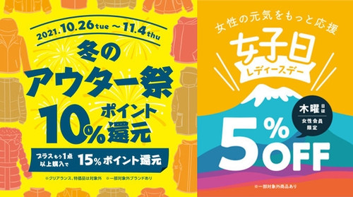 本日10/28は木曜日ですので女性の好日山荘メンバーズカード会員様が得するレディースデイです。