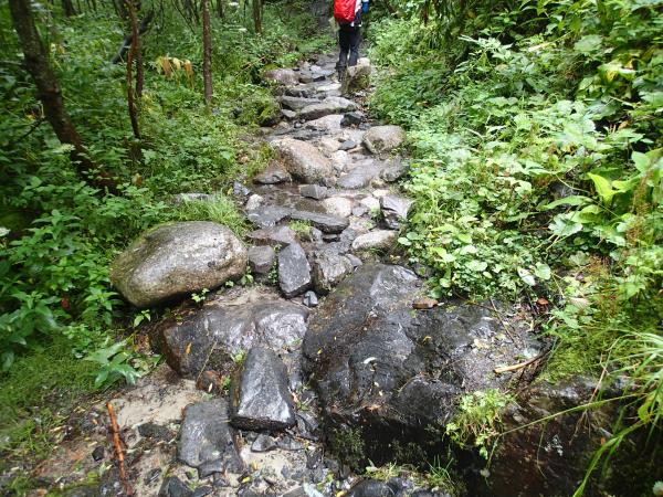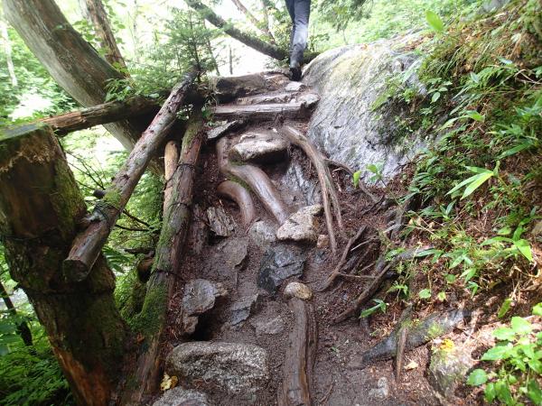 - 上高地~横尾間もぬかるみあり。2日目は夜中雨が降り続けていたので川の水も増水し、登山道も初日より水が流れている箇所がありました。