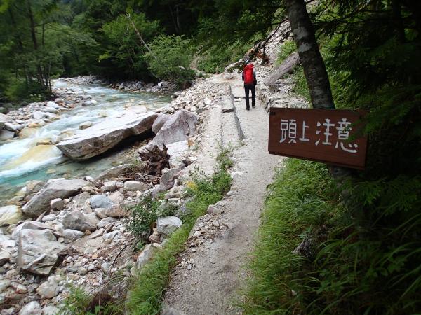 上高地~横尾~槍沢ロッヂ間に落石注意箇所があるので気を付けてください。