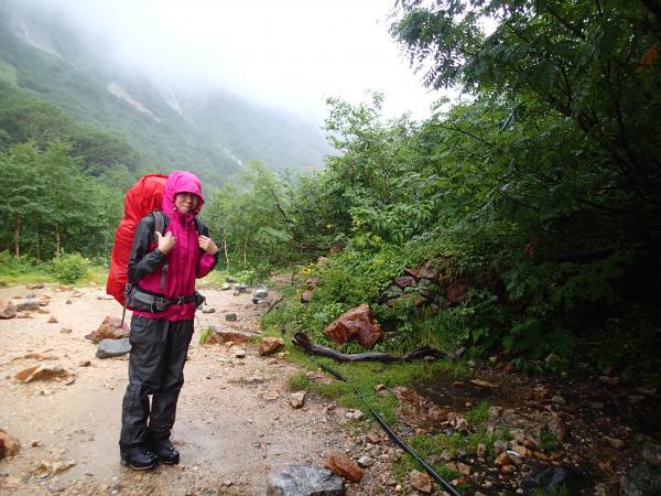 初日は夜行バスで上高地に着いた時から雨☂。。。徳澤~槍沢ロッヂ間だけは雨がやみましたが、その前後・2日目は土砂降りでした;ここまで土砂降りだと、ゲイター必須・レイングローブがあると尚良いかと思います。
