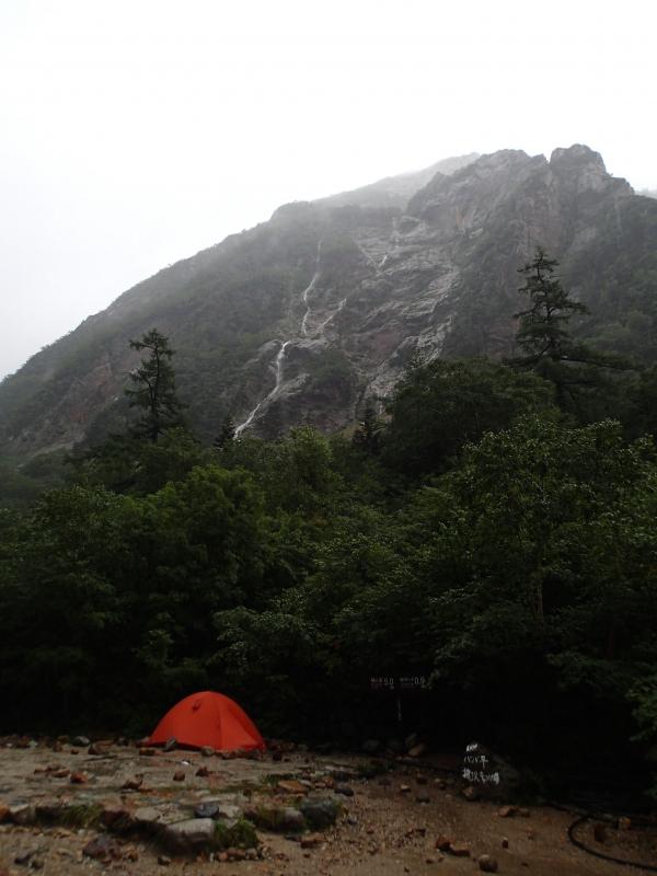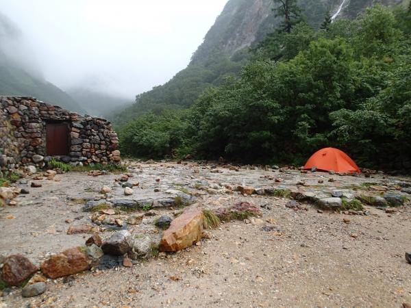 今回は槍沢ロッヂの先、ババ平にある槍沢キャンプ地にテントを張りました。