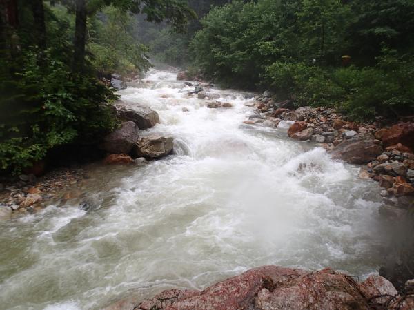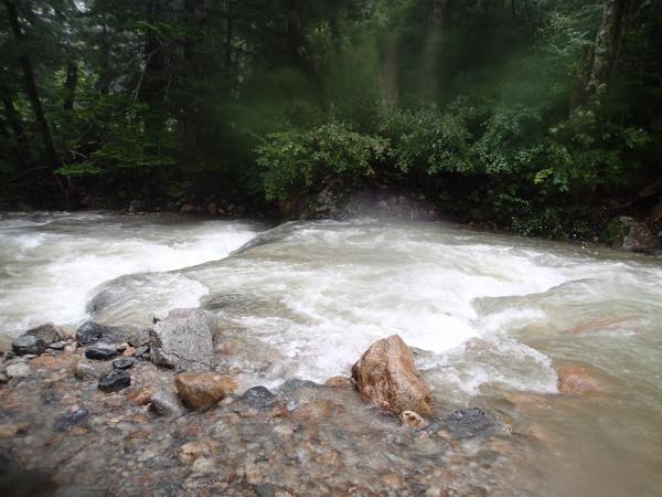 雨量の多い時は横尾~槍沢キャンプ地の沢沿いは注意が必要です。