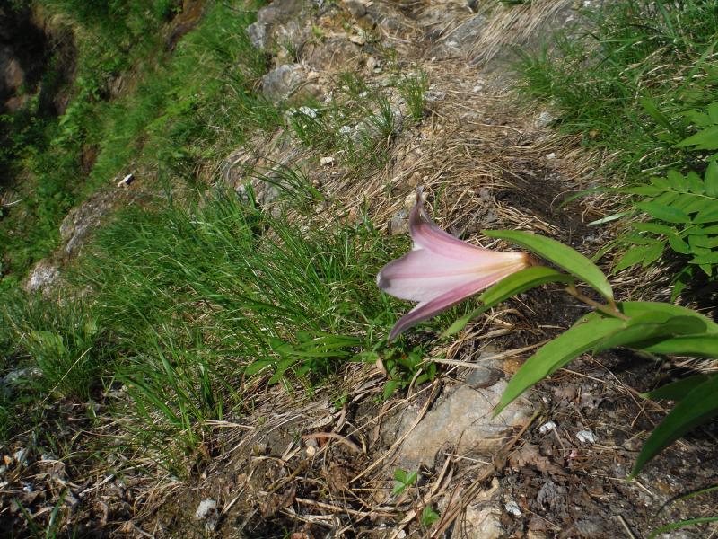 序盤は沢に沿って歩いて行きますが、沢の底がどんどん深くなり高度感がみるみる上がっていきます。際どいへつりも多いのですが、そういう場所に限ってヒメサユリやヒメシャガなどの可愛い花が咲いているのでついつい見とれてしまいました。