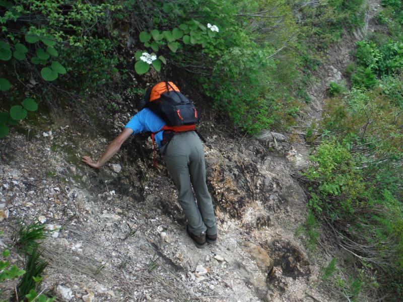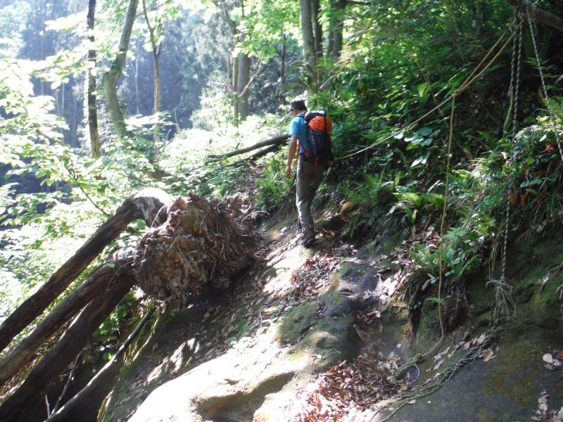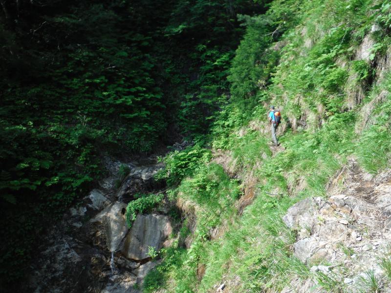 ・湯沢の頭を越えてから右手にトラバースする場所があります。ロープが中途半端で足場も悪くこのコースの核心部だと思いました。