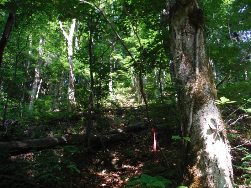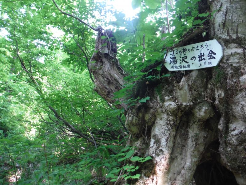 - ・湯沢の出合は明確な標識あり。登山口から出合まで半分進んだ右手尾根に紛らわしい赤テープがありますが、そのまま出合まで渓谷沿いを真っ直ぐ進みます。
