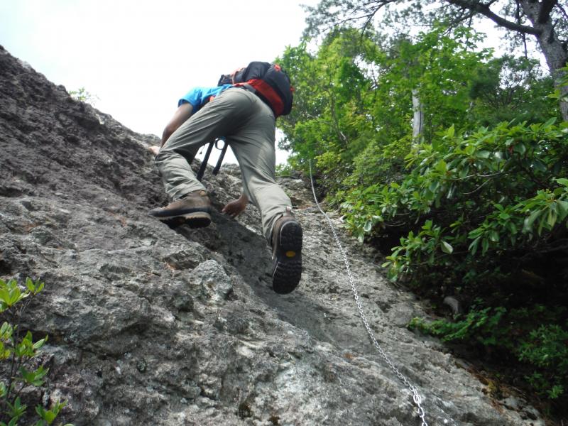 ・岩稜登りは鎖も岩もしっかりしているので思ったより登り易いです。
