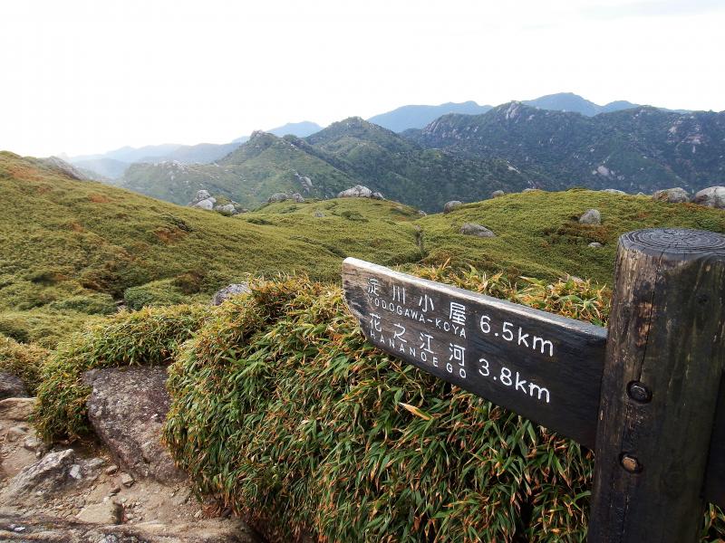 新高塚小屋→(96分)→平石→(31分)→焼野三叉路→(24分)→宮之浦岳→(31分)→栗生岳→(66分)→投石の岩屋→(30分)→黒味岳分かれ→(30分)→黒味岳→(27分)→黒味岳分かれ→(13分)→花之江河→(8分)→小花之江河→(66分)→淀川小屋