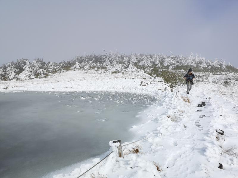 前日に降った雪の影響で、地面もふわふわのパウダー、樹氷も綺麗でした。