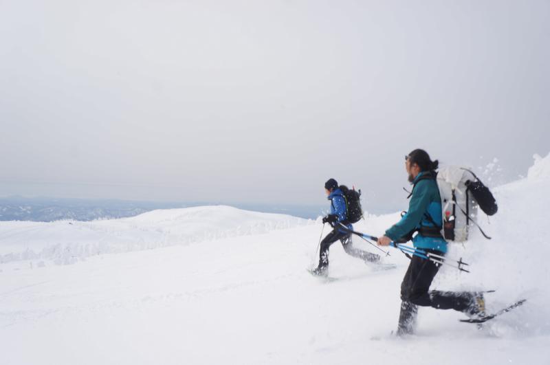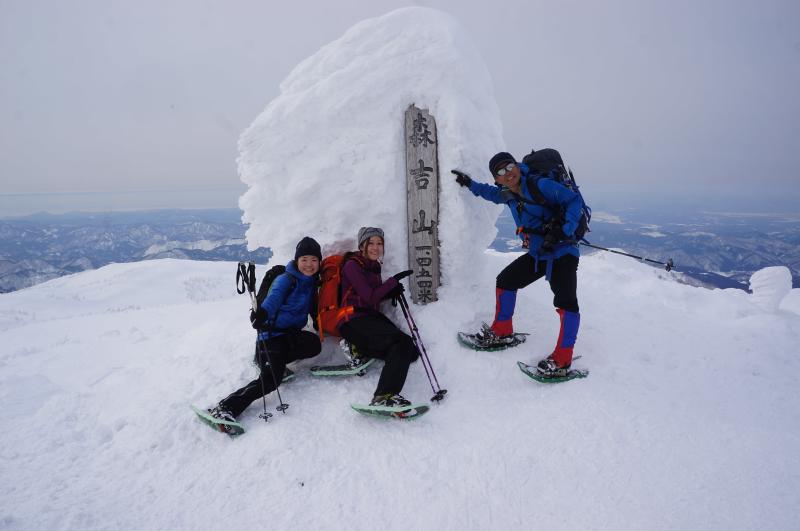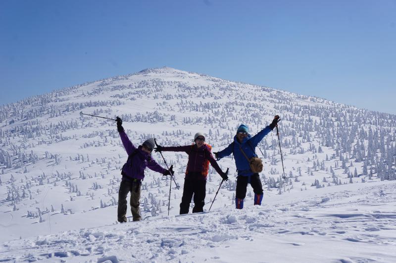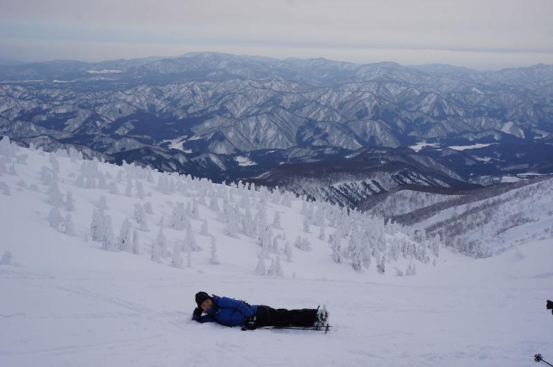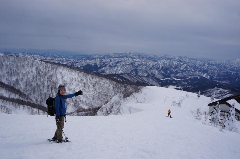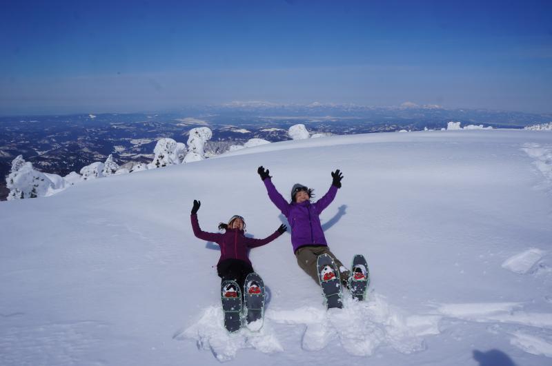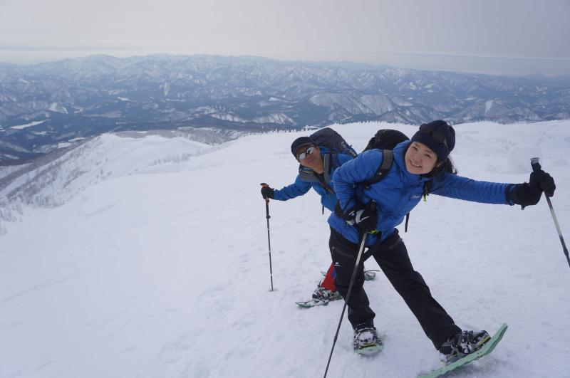 3/1には加藤ガイドと合流!翌日の天候が崩れる予定を恐れて、スピードをだして山頂へ^^ちょっと上りにへこたれながらも登りきると、360度の大パノラマが!!東北の山々を見渡すことができました^^