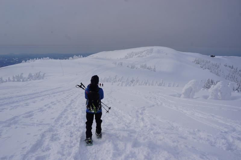 アイゼンでも山頂に登れるが、スノーシューのほうが行動範囲が広くなり楽しめる。