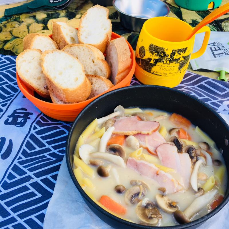 私たちは今回フライパンを使って「ベーコンときのこのクリームシチュー」を作りました♡