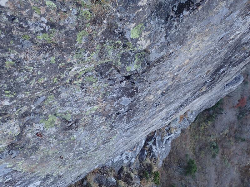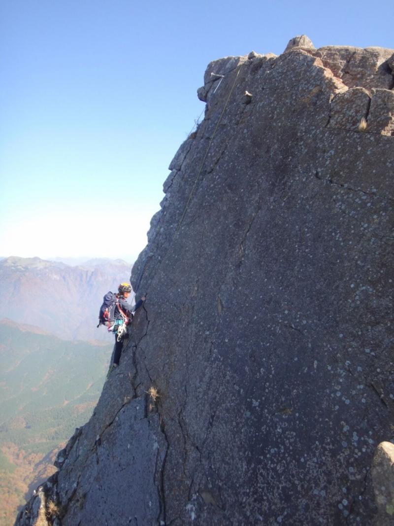 正規の鷲尾ルートは凹角を左上していくようですが、右にルートをとりカンテに合流。