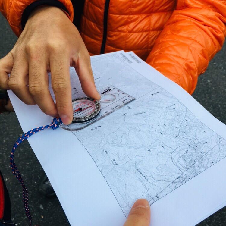 ゆっくり14時に集合。といっても、ナイトハイクには少し早いので、我らが安藤店長による「読図の基礎講座」スタート。実際にコンパスを初めて使うアルバイトFが思わず一言「コンパスって楽しい。」さすが安藤店長、教え方がとても分かりやすいです。今後、店舗でミニ講座を行う際に私も勉強になりました。