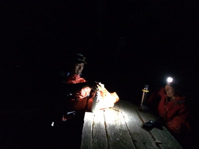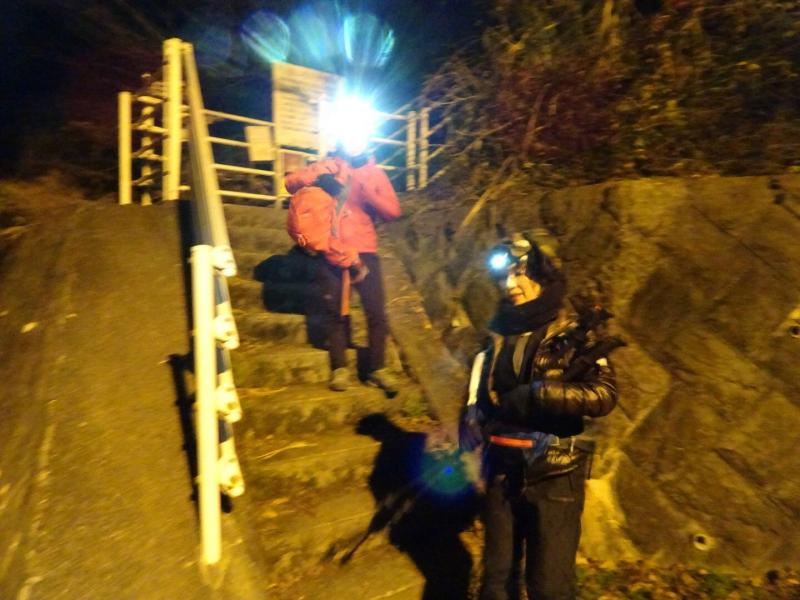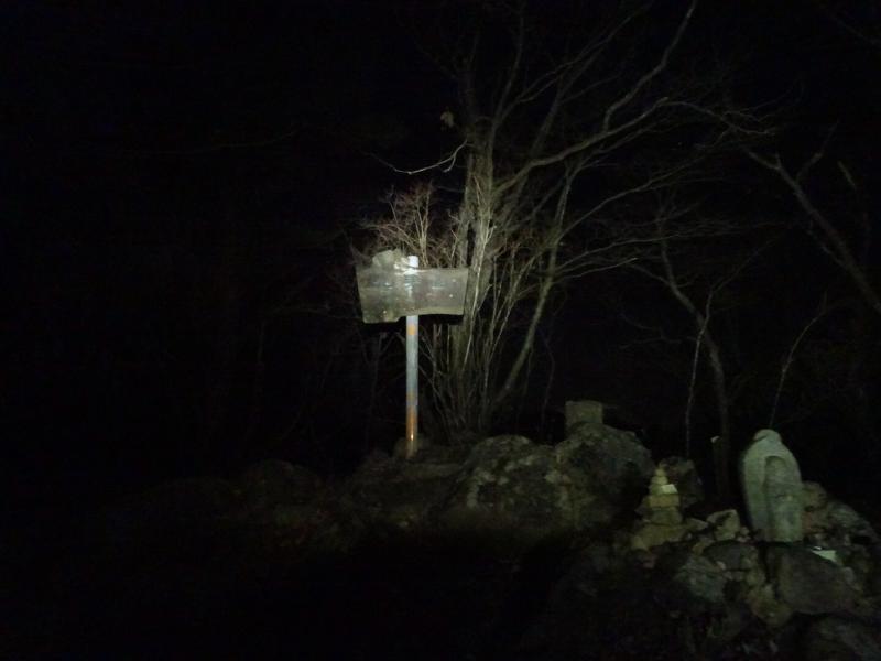 登山口に構える「熊出没注意」の看板にビビりつつも、警戒心を働かせながら真っ暗な登山道を歩きます。なんかナイトハイクって、ワクワクしますね。