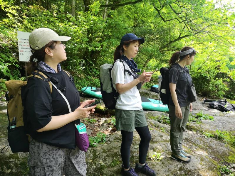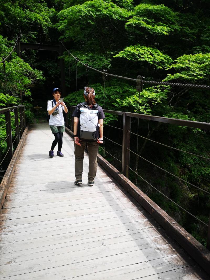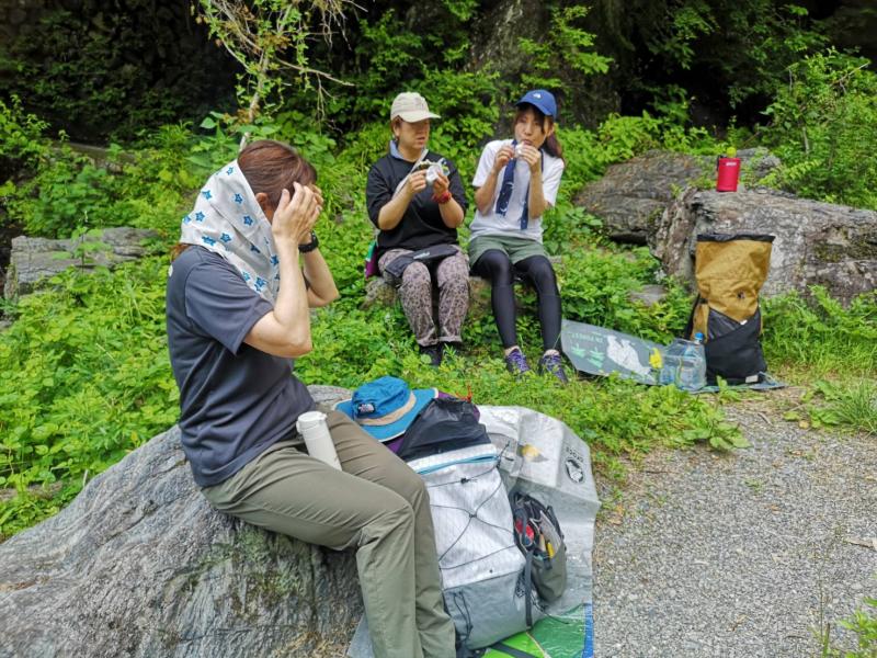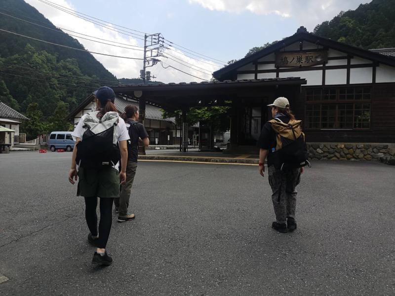 最後に訪ねたのは鳩ノ巣渓谷。宿やカフェなどもあり避暑地として人気のエリアです。お昼を回っていたのでここでもぐもぐタイム。なんとお菓子の配給があり、私にとっては嬉しいサプライズ。こういう楽しみ方ができるのはやはり女性ならでは。ほっこりした気分で終点の鳩ノ巣駅に到着しました。