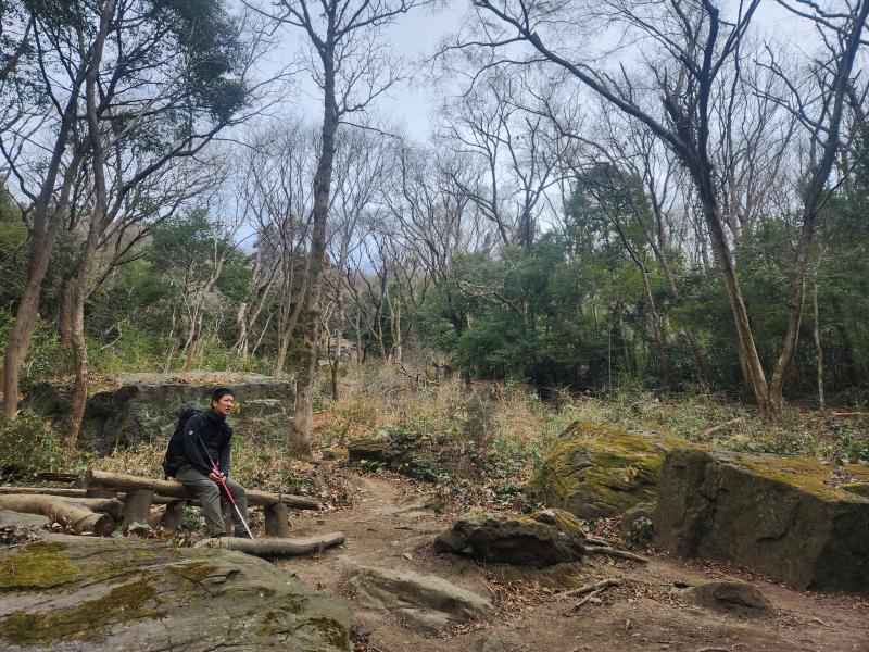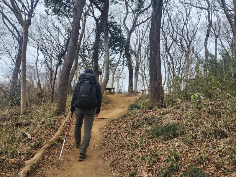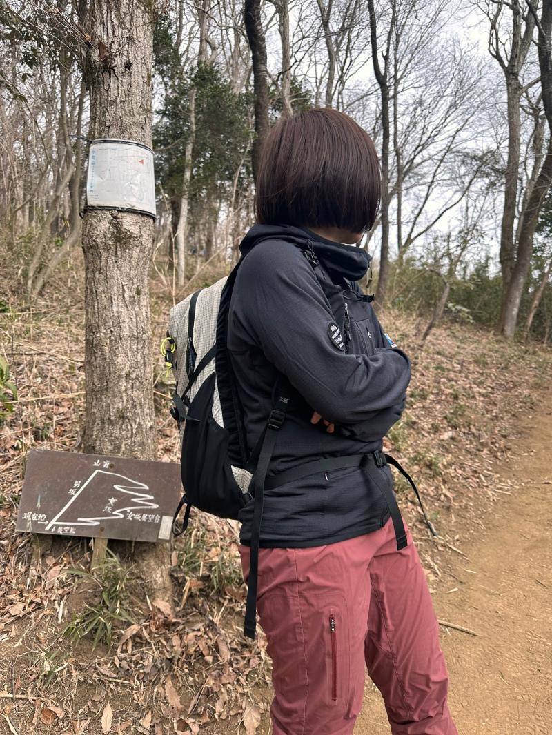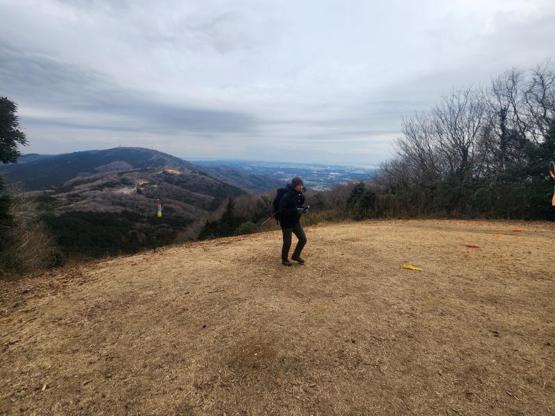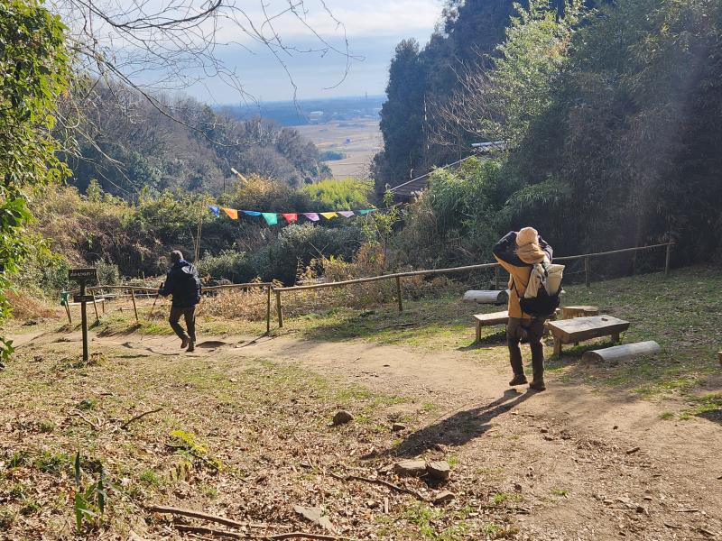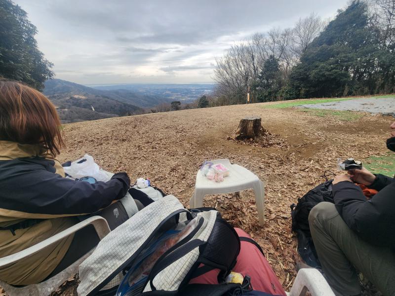 こちらからは霞ヶ浦が見渡せました。曇り空でなければ富士山も見えるはずです。お昼の時間は生憎のお天気で、温かい飲み物が有り難かったです。雪が無いとはいえ、まだしばらくは保温ボトルや防寒着、手袋やニット帽が必須です。新作のミレーのフリースを着ていましたが、登りは適温でも休憩時はさらに1枚防寒着が必要でした。