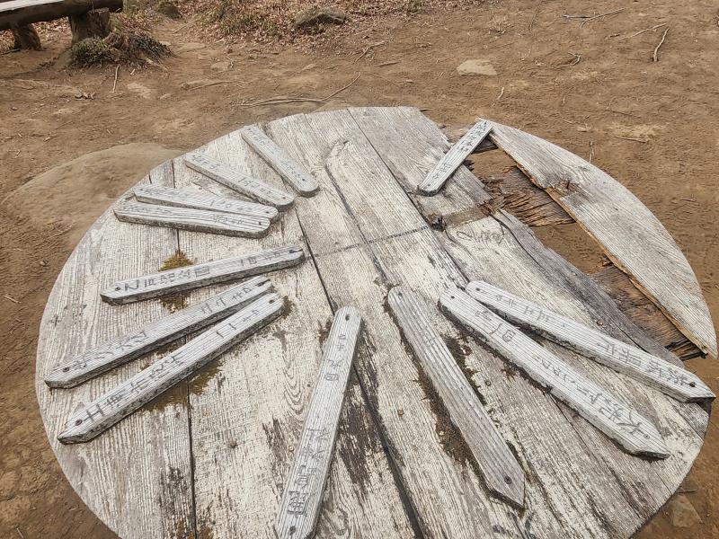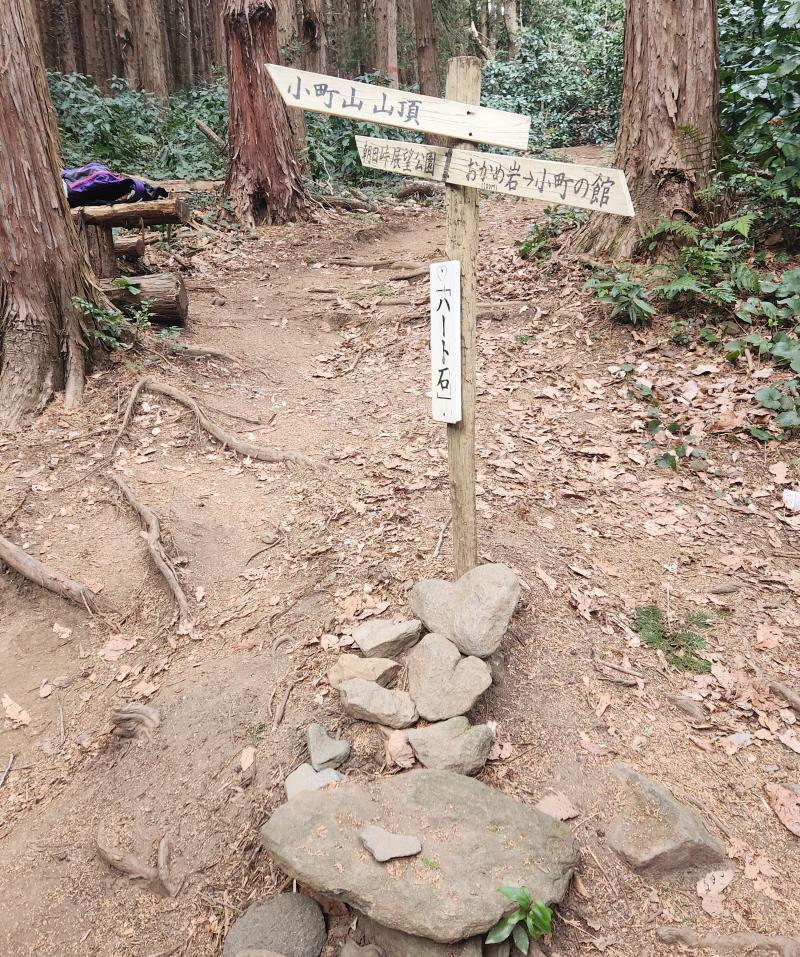 筑波山の近くには手軽に登れる低山がいくつもあります。その中でも小町山は地元の方たちのおかげで道が整備され、ユニークな道標や見処スポットが各所にあり登る人を楽しませてくれます。山頂からの筑波山の眺めは爽快で、少し歩くとパラグライダーの離陸場所も見学できます。運が良ければ飛び立つ人を見送れるかもしれません。お昼はここで食べ、温かいお汁粉やスイーツで優雅なティータイムを過ごしました。