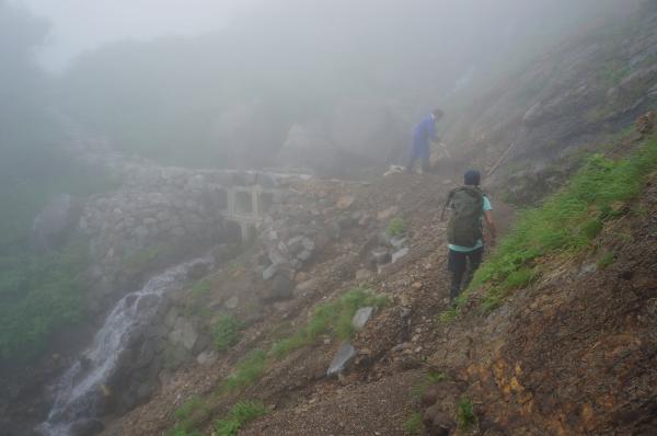 - 降雨翌日のため、甚之助小屋より上で登山道にも水が溢れてました。