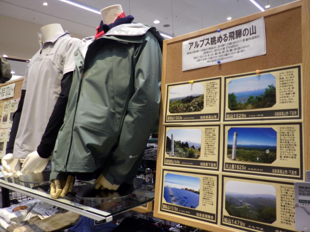 岐阜県は北部に北アルプス・白山・御嶽山など3000m級の山々、中南部にも魅力的な山がたくさんあるまさに「山の国」です。これから山登りを始める方でも、魅力的なフィールドが豊富にございますので、地元の山から始めてみましょう。経験豊富なスタッフが揃う当店では、季節に応じたおすすめの山をお客様に合わせて、ご紹介させて頂きます。 やや広めの店内はギアでは登山靴・ザックを中心として便利グッズからクライミング用品・沢用品にも 細かく在庫しております。ウェアーではザ・ノースフェイスを中心として、マムート・ミレー・フォックスファイヤー・サロモン・マーモット・アディタスの各ブランドのコーナーがございますので必ずお気に入りのウエアーが見つかるはずです。 山の相談・装備の相談・修理の相談など何でもご相談ください。