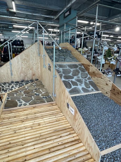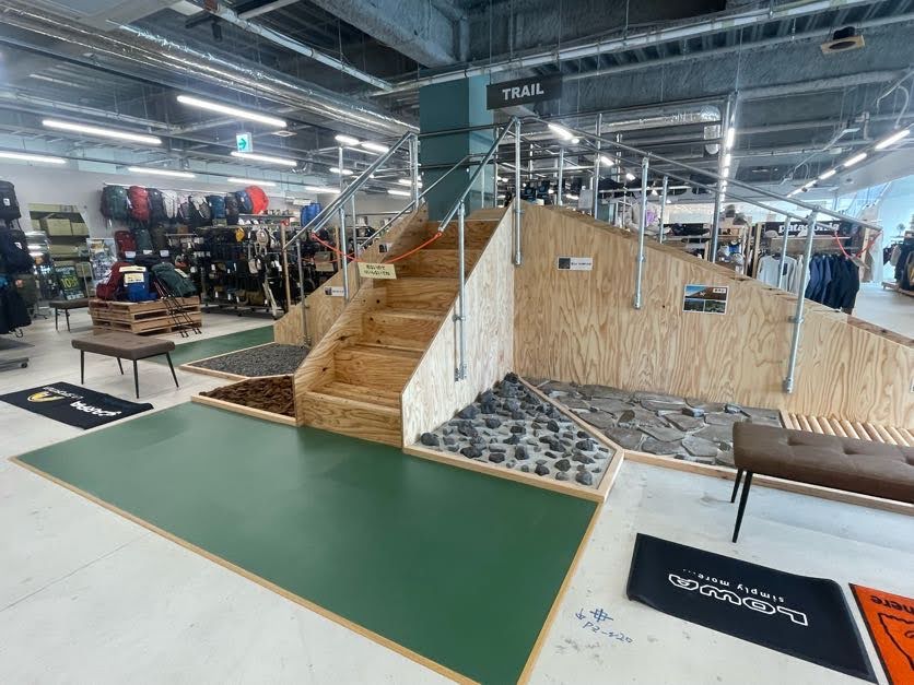 また店内には、岩場やザレ場といった登山道を疑似体験できるスペースに加え、ウォーキングやランニングでも使用できる【関東最大級】を誇る最長25mのテストトレイルを設置しております。実際に歩きながら最適なアウトドア用品を選ぶことができますので、初心者の方~道具の買い替えをお考えの方までお気軽にご相談くださいませ。