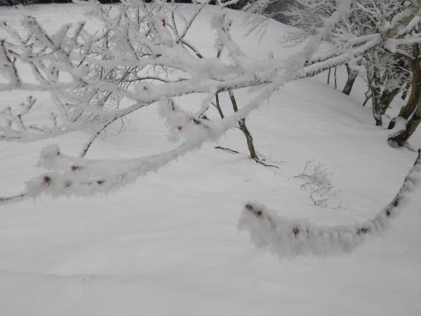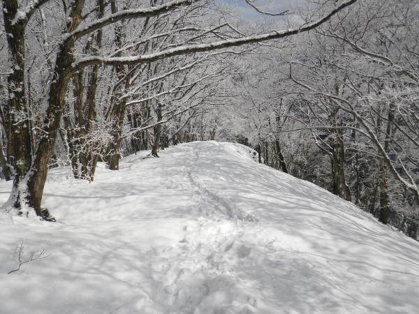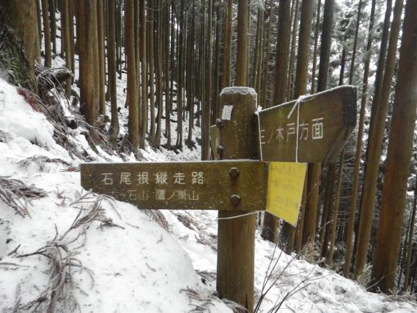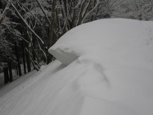 石尾根はトレースがあるので迷うような場所はありませんが人が踏み抜いて歩いたままの形で雪が締っているせいか、非常に歩きにくかったです。