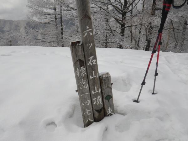 当初は鷹巣山まで歩く予定でしたが六ツ石山より先の石尾根は人があまり入っていないためトレースが無く、時間を考えると今回はやめた方が良いという事でここでピストンする事にしました。