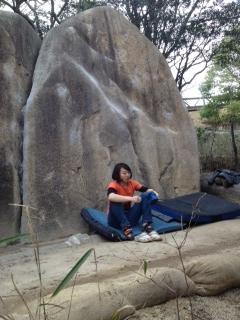 阪急甲陽園駅から岩場までの道のりは整備された道とはいえ、ボルダーマットを担いで登るのはなかなか大変で、途中何度か休憩して岩場まで行きました。