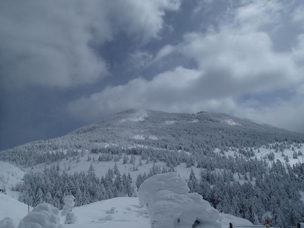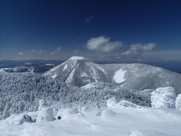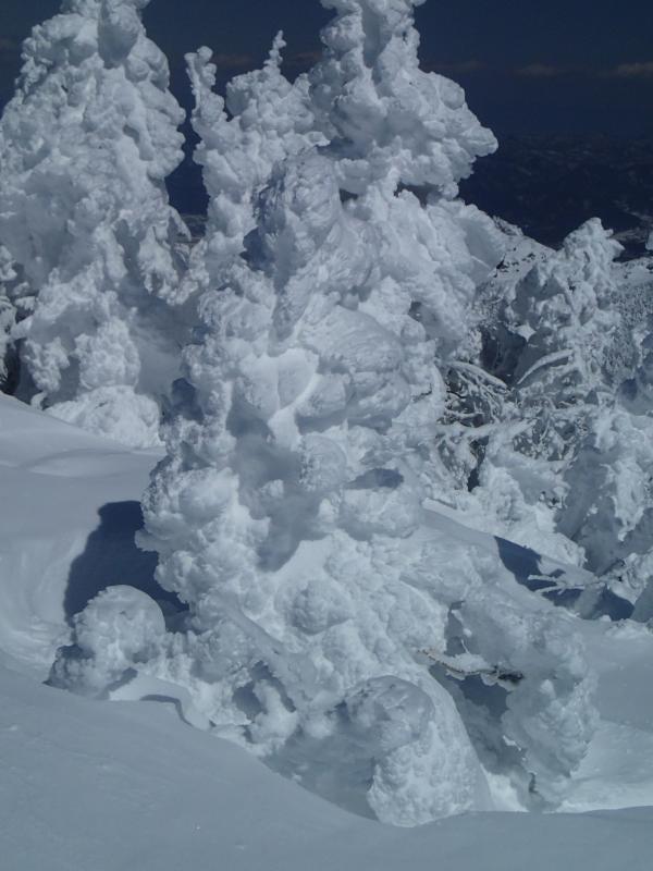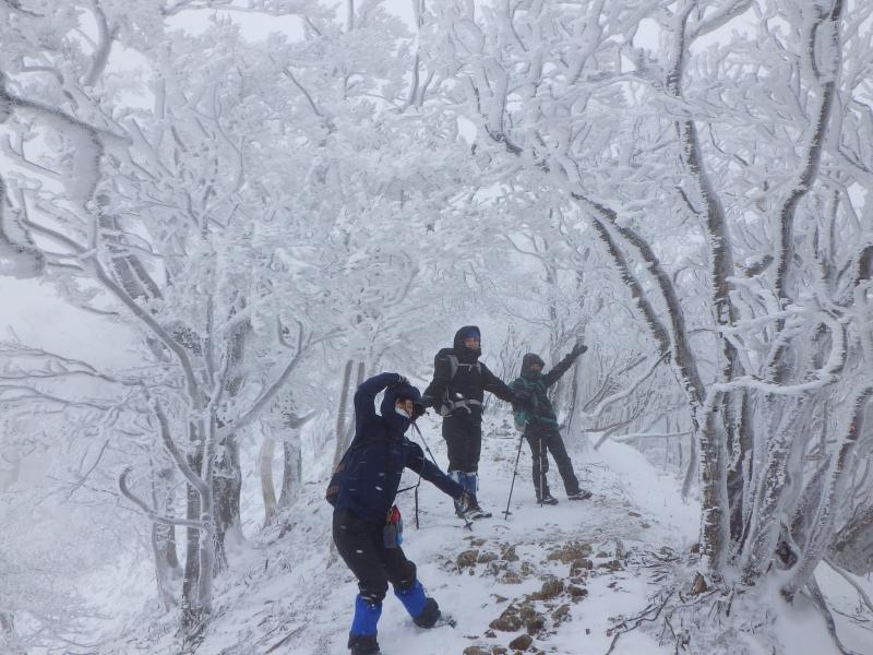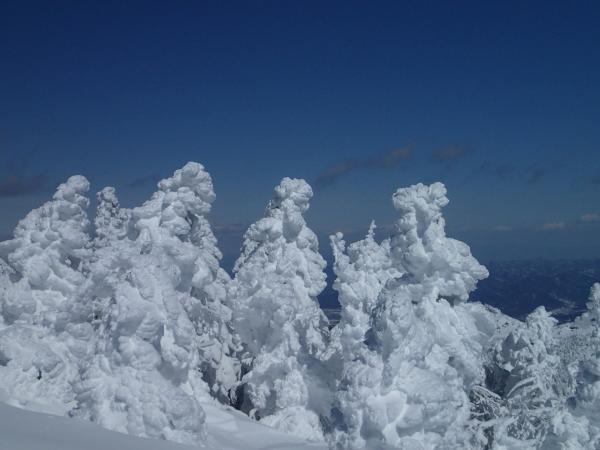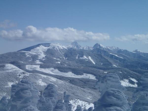 コース中の樹林帯では樹氷並木を楽しみ、山頂からはガイドさんの解説を聞きながら、