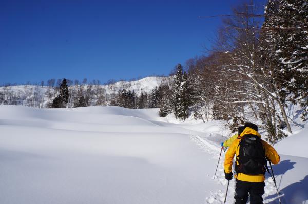 冬の鍋倉山は登るルートも様々です。初めて登るのであれば、必ず地元のガイドさんや経験者の方に詳しくお話をきいてから出発することをお勧めいたします。