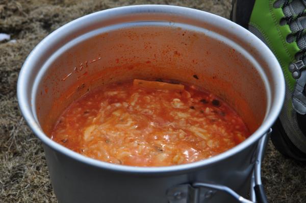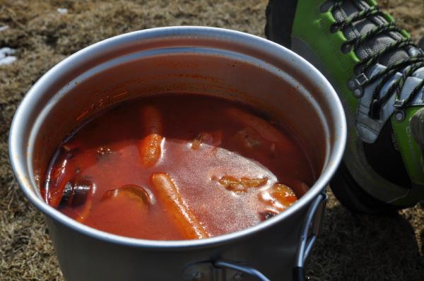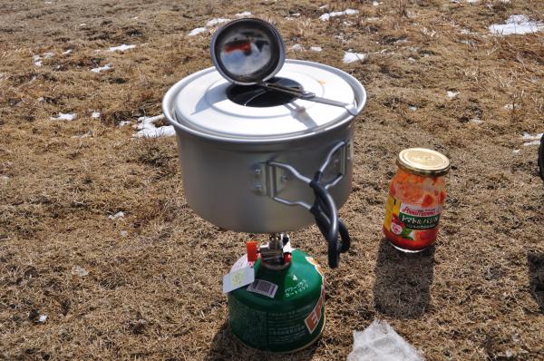季節は3月なので、のんびりお昼ご飯が食べられるかなぁと、山頂でトマト鍋をしましたが、冷たい風が吹いていてさすがに寒かった…