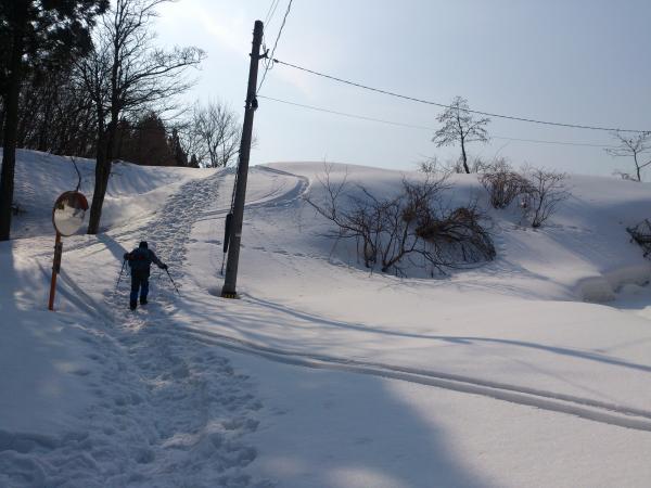 - スポーツセンターから登山口までは舗装路で除雪されてます。
