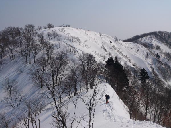 白禿山から夕霧峠は、歩行者も少なくなりますので雪がかなり深いです。稜線が狭くなっているところもありますので注意しましょう。