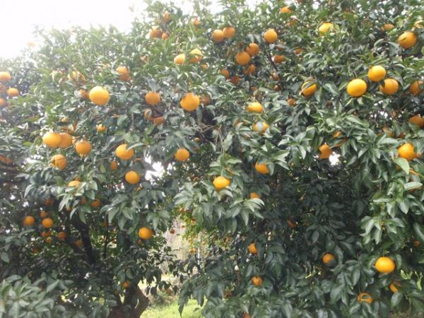 登りはじめにみかん畑があって、たわわに実ってました。