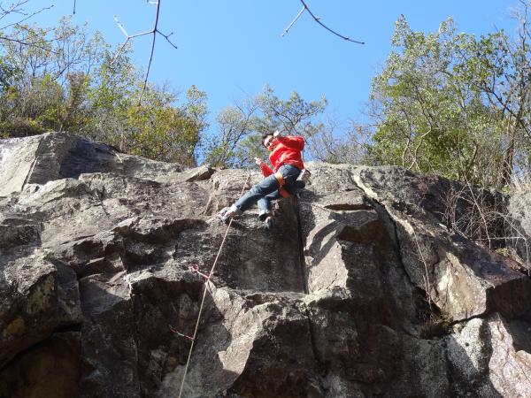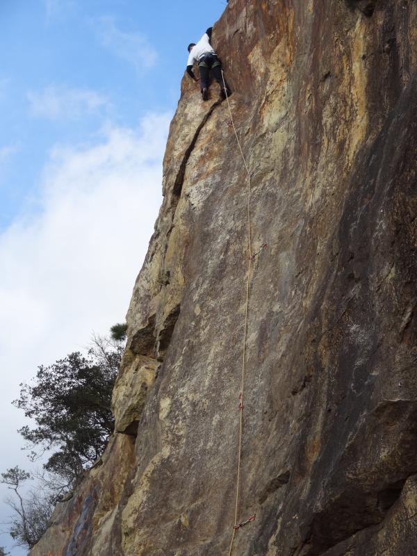 天気は前日が雨だったので岩が乾いてるか心配でしたが、なんとか乾いてるルートもあり、