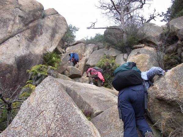 - 阪急芦屋川-(20分)-登山口-(90分)-岩梯子-(40分)-荒地山-(40分)-風吹岩-(55分)-保久良梅林