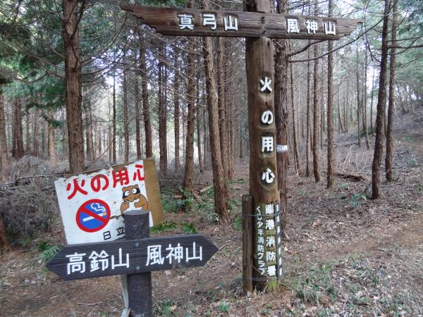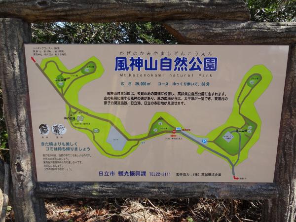 山と渓谷社発行「茨城県の山」の「風神山」(ふうじんやま:山頂の案内板には