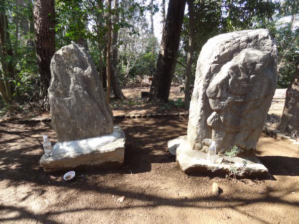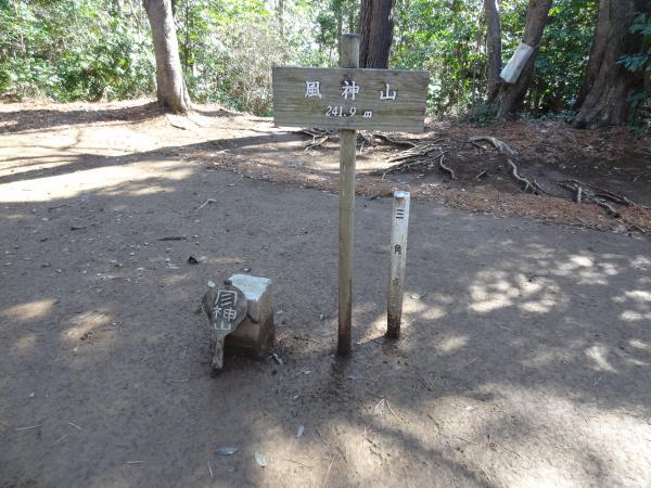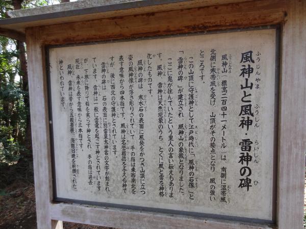 歩いてすぐに風神山山頂へ到着し、風神・雷神の碑があります。