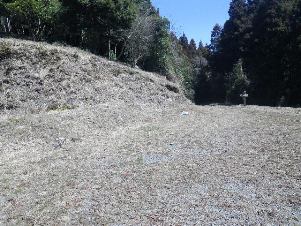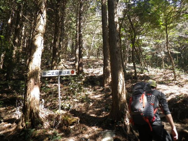 ここから先、少し平坦な道を歩いていくと、登山口の看板があります。
