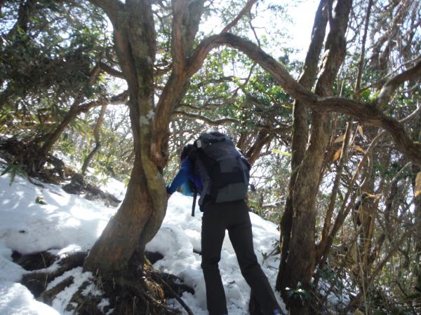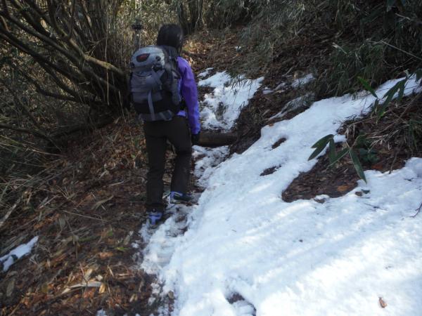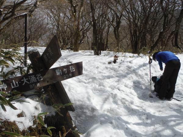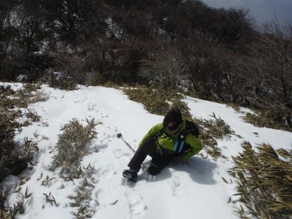 下山時は気温も上がり、雪は溶け始めてグチャグチャです。