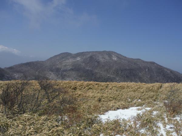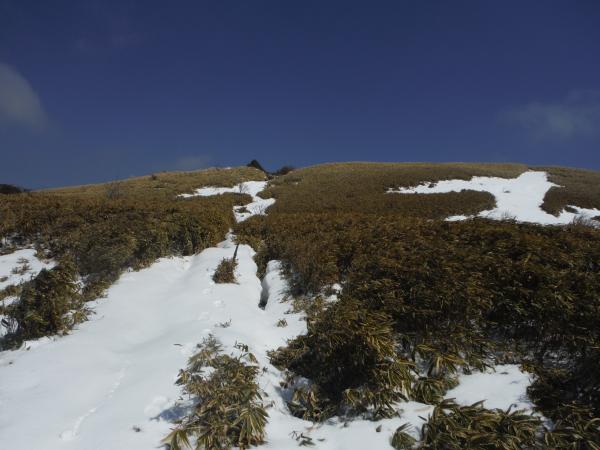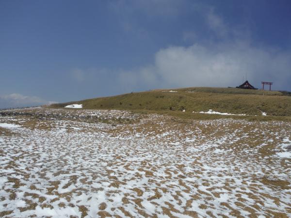 広々とした山頂は風が強いがために雪は少なめ。ちょんっとある程度。