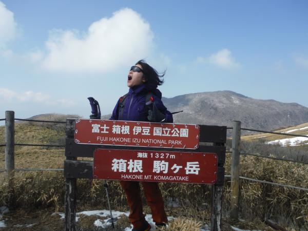 山頂が広くて、ゆったりできる山、箱根駒ヶ岳。最初は、神山経由で早雲山方面に下山の予定でしたが、あまりにも暴風に遭遇し、ロープウェイの道を歩くピストンで行きました。