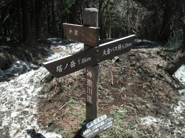 大倉尾根コースを歩きましたが、金冷シノ頭まで雪は余りありません。