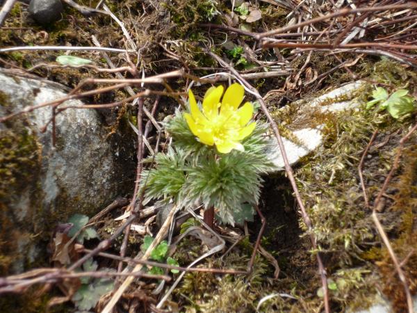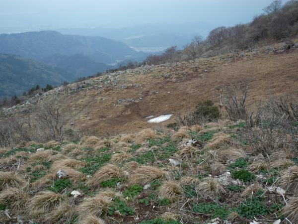 雨こそ降らなかったものの、前半は終始曇り空で期待していた最高の眺めは満喫することができませんでした。それより何より、笹峠から尾根~頂上のこの間がめちゃめちゃ横風が強くて、時折身体が持っていかれそうになり、踏ん張る場面すら出て来たときは心が折れそうになりました・・・。でも、お目当ての『福寿草』に会えた瞬間、『よっしゃ!ご褒美やぁ~』と直ぐに立ち直りました。