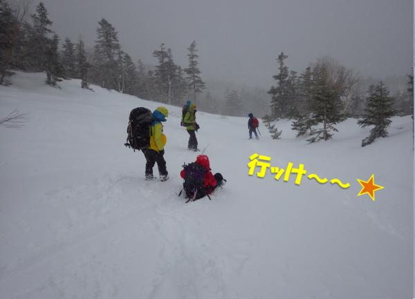 この日は天気が悪いので、行けるところまで行きソリで遊んで帰ろうということに。