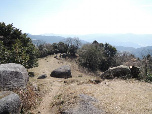 杉の樹林帯を登り、最後の急登を登りきるとすぐに山頂、360度の展望が楽しめます。