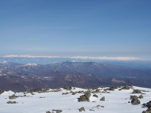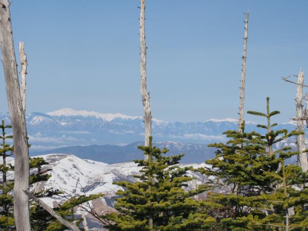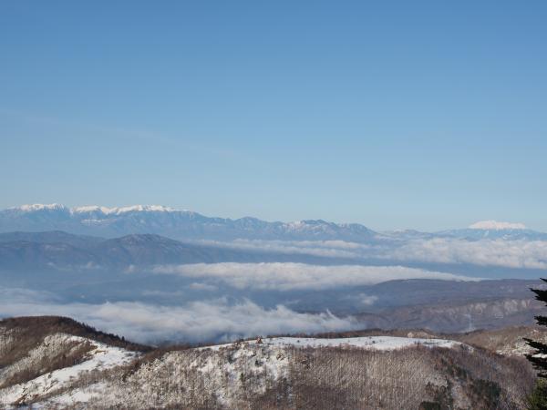 山頂からは八ヶ岳、南アルプス、中央アルプス、御嶽山、北アルプス、頚城連山、浅間山などなど。