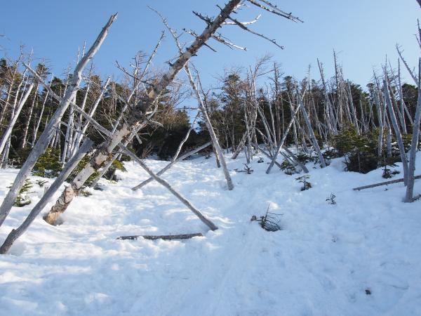 山頂の溶岩は積雪ある方が歩きやすいですね。