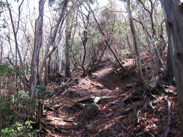「頂上まで35分」の看板を過ぎ、谷から尾根筋に入る辺りから急登になります。ここが今回一番のがんばり所です。