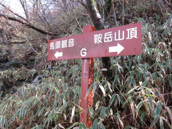 - 登山口[580m]→(80分)→女岳分岐(広場)→(10分)→鞍岳山頂[1118m]→(35分)→ツームシ山[1064m]→(95分)→登山口