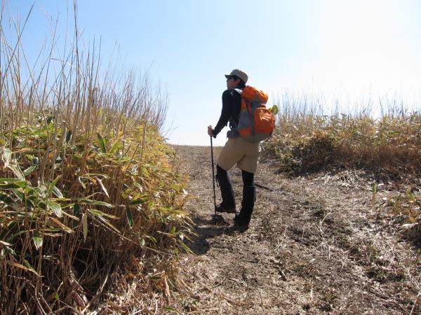 涸れ沢を越えると急登が続きます。女岳分岐からツームシ山まではなだらかな道で歩きやすいです。